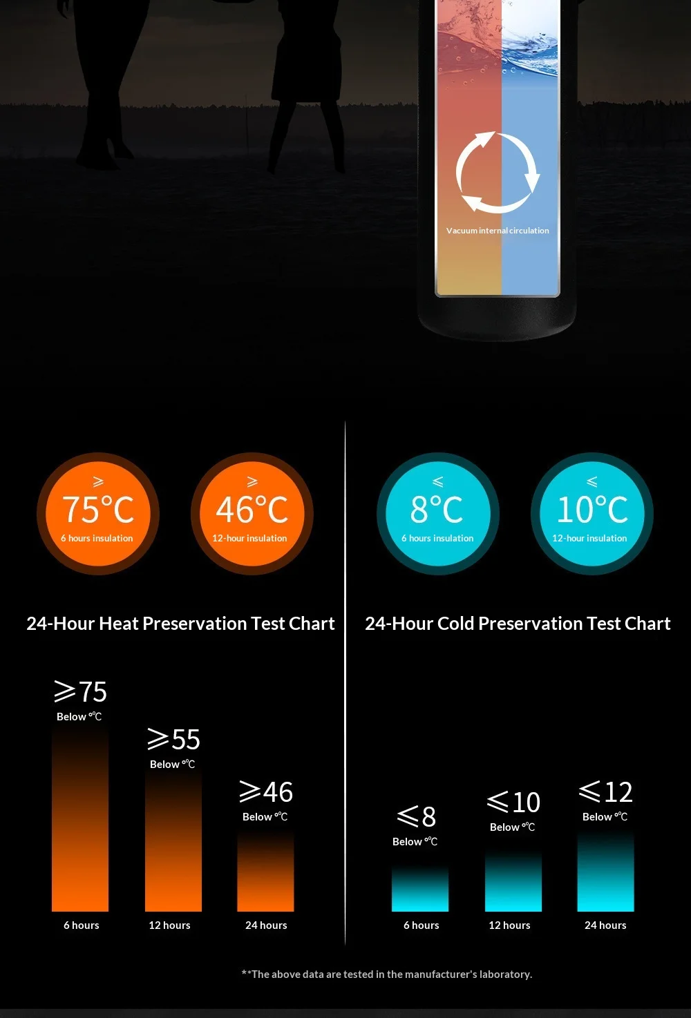 Insulated Thermal Performance: Keeps drinks hot or cold for up to 12-24 hours.