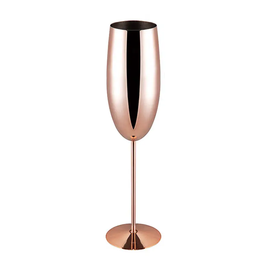 Stainless Steel Custom Color Logo Gold Wine Long Stem Goblet Champagne Glass Cup