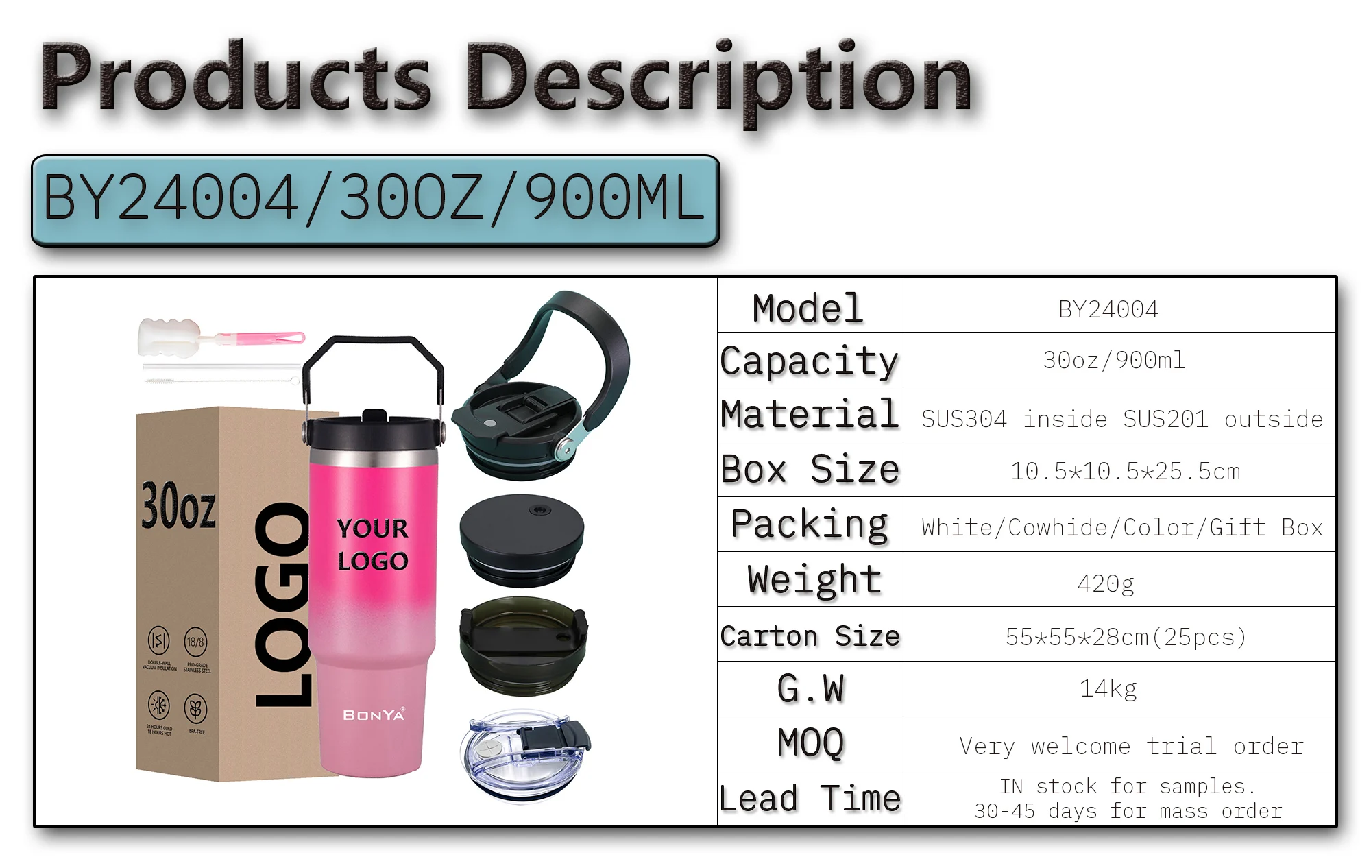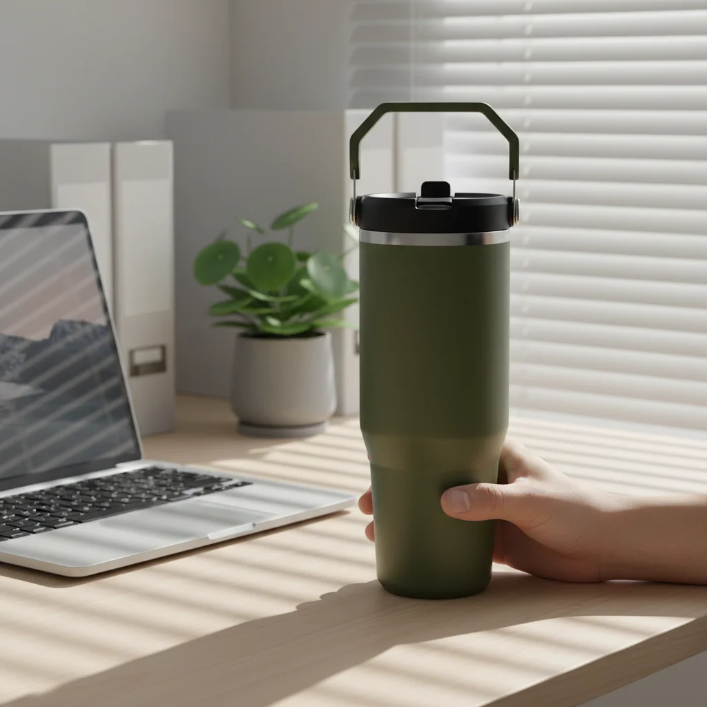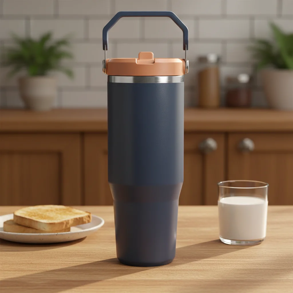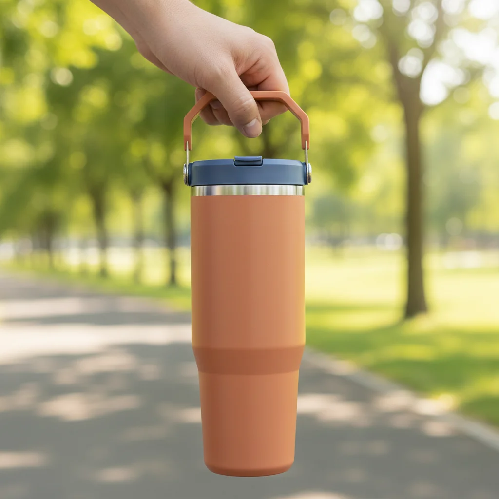 Top Ranking Eco-Friendly 20oz & 30oz Stainless Steel Tumbler Double-Wall Flip Straw Insulated Travel Mug Tumbler with Handle